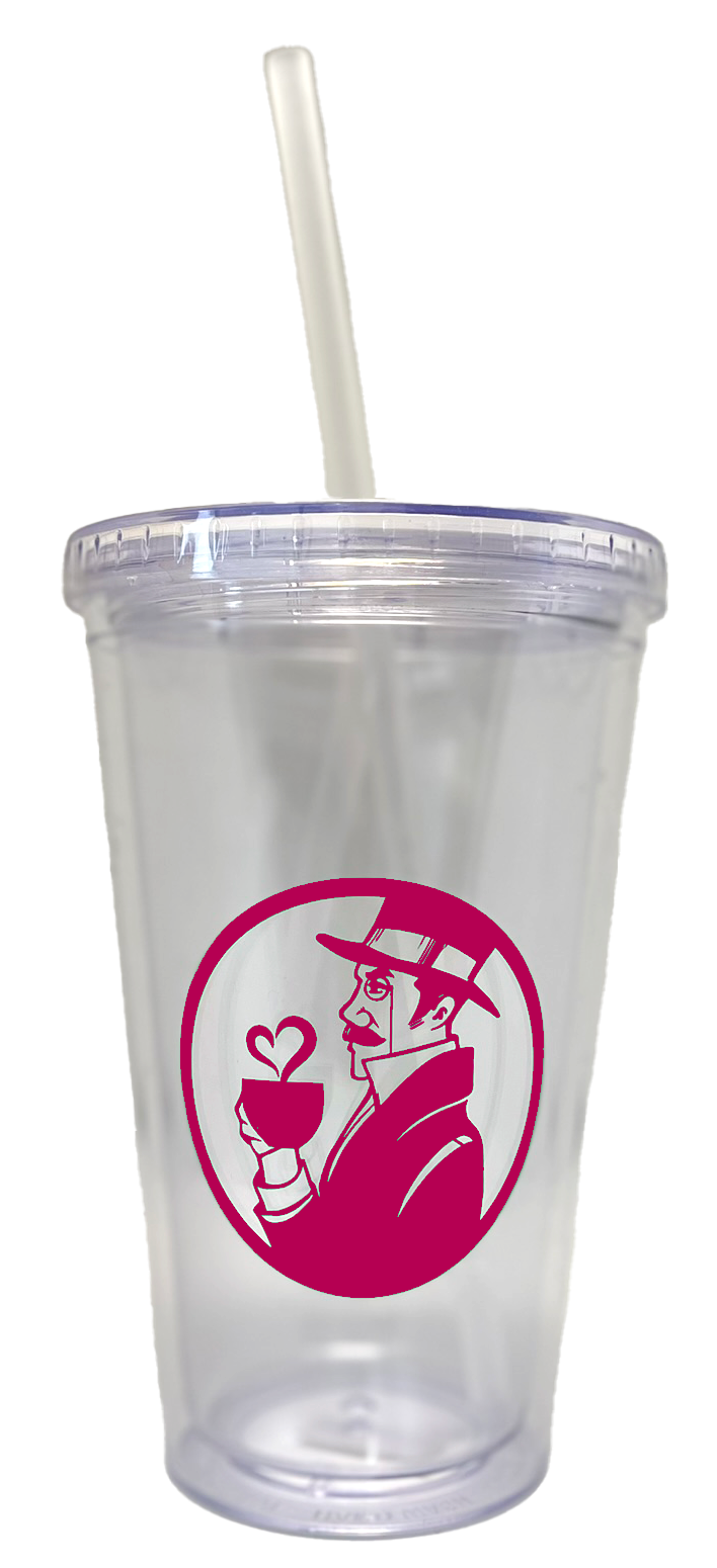 The T. Kettle plastic tumbler is a 16 oz travel cup with lid and straw. It is a great for enjoying a cup of iced tea at home or on the go. Available in clear plastic with four great accent colours, fuchsia, orange, blue and green.